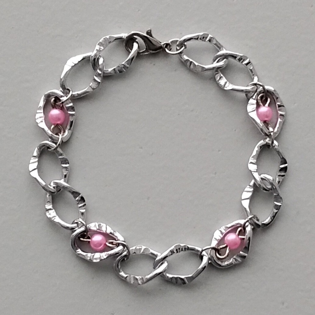 Discover this beautiful silver chain bracelet set with delicate pink pearls, an elegant and timeless piece of jewelry that you will love.